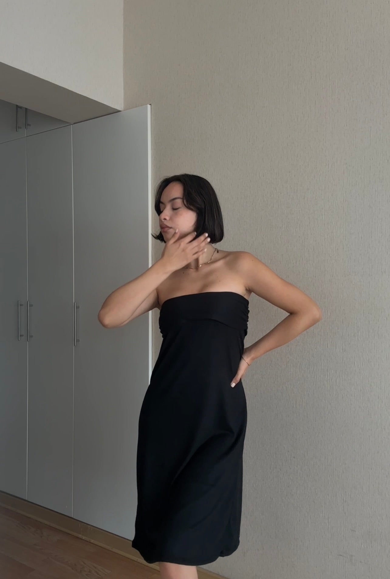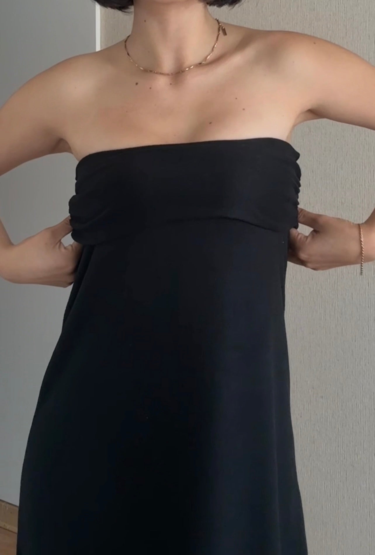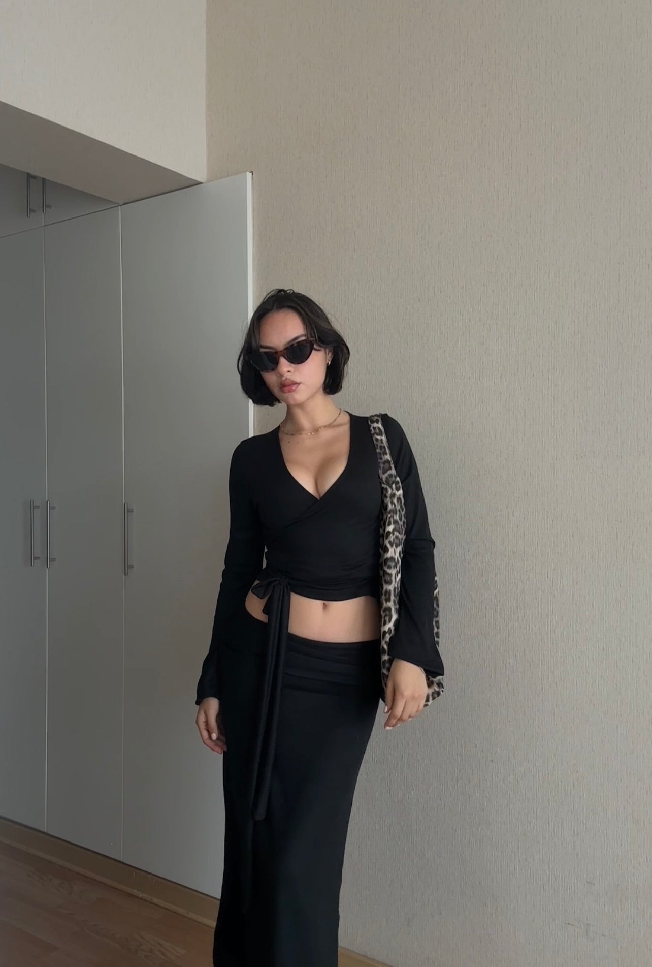 La modelo mide 1.68cm y lleva puesto la talla S