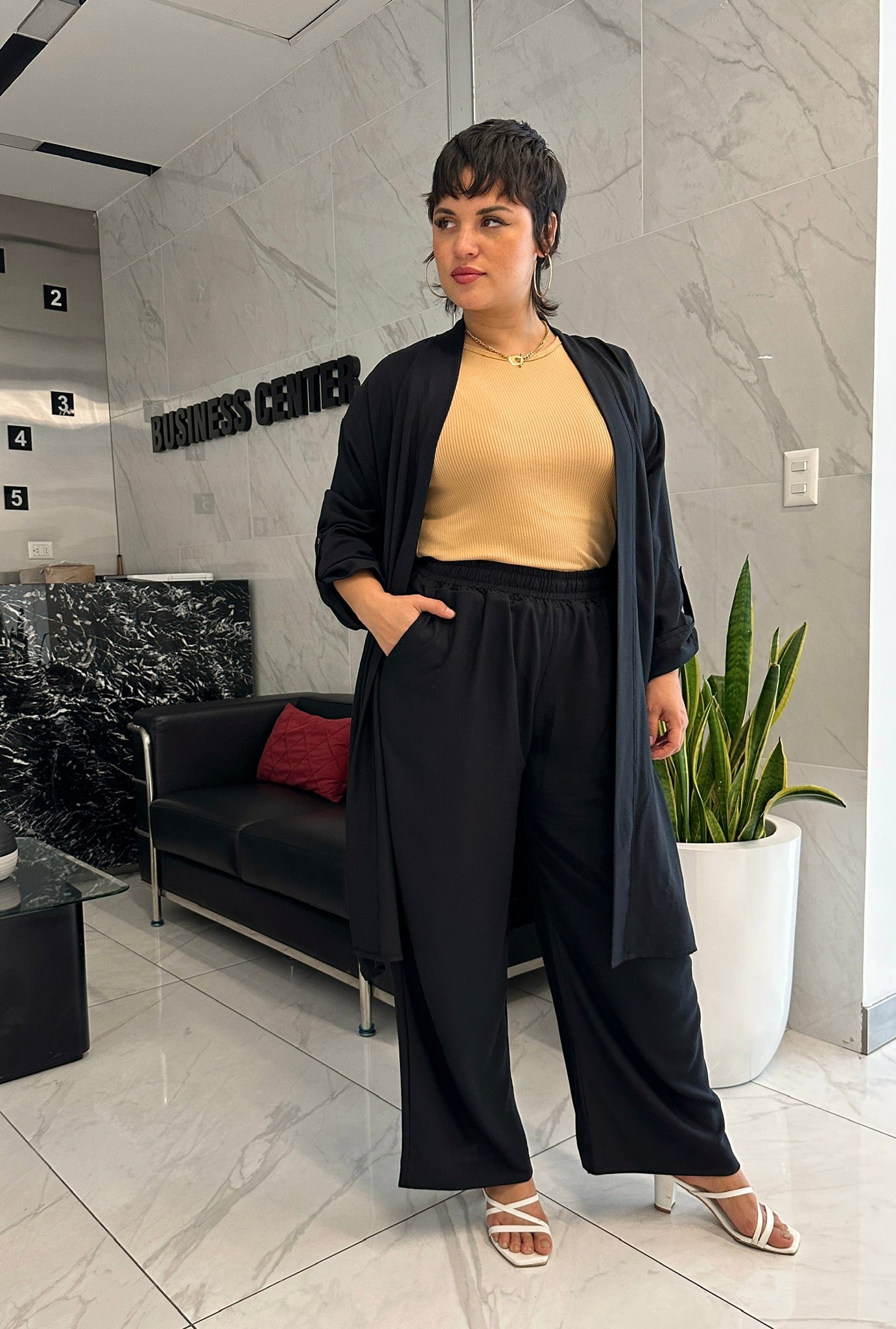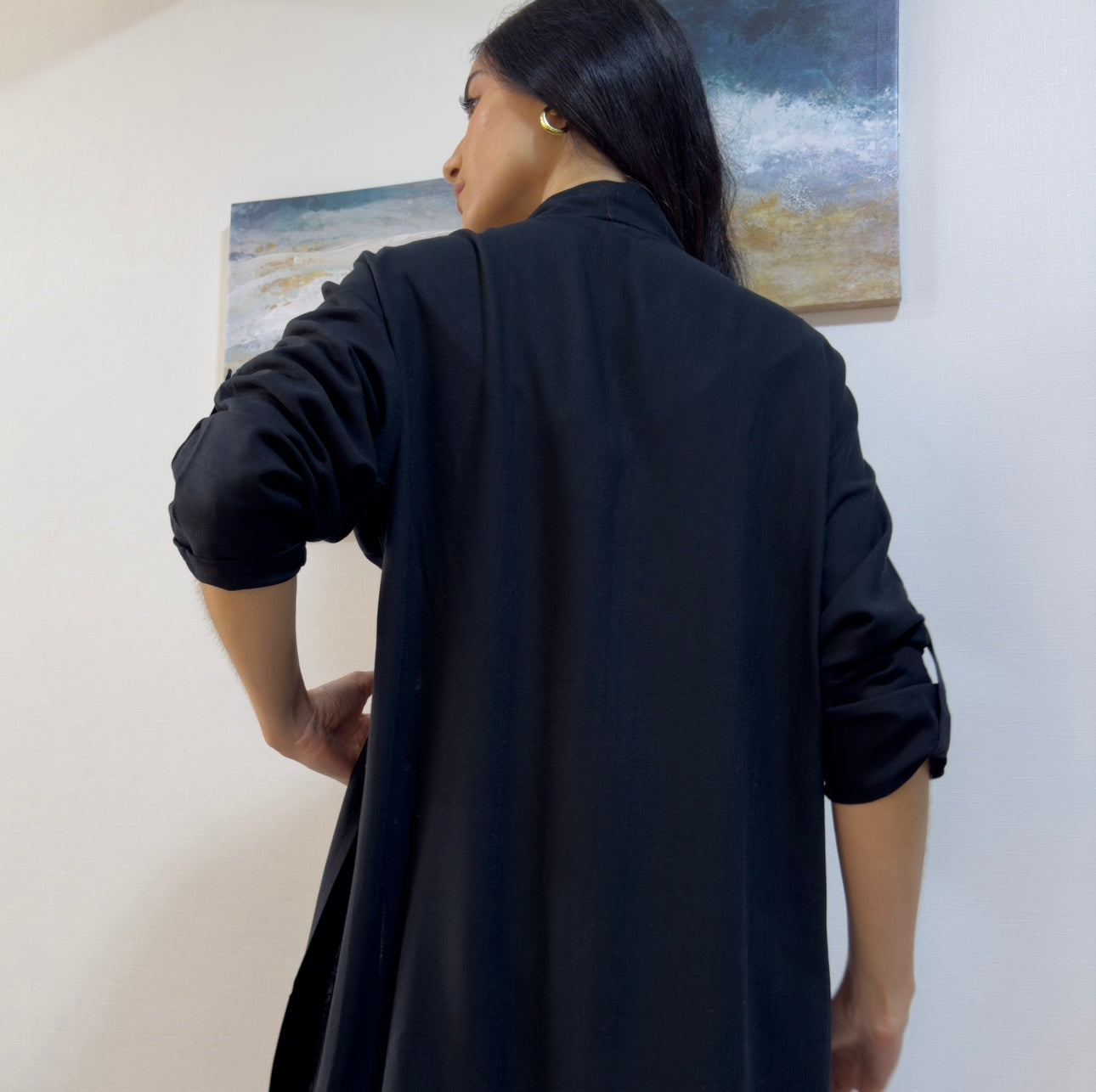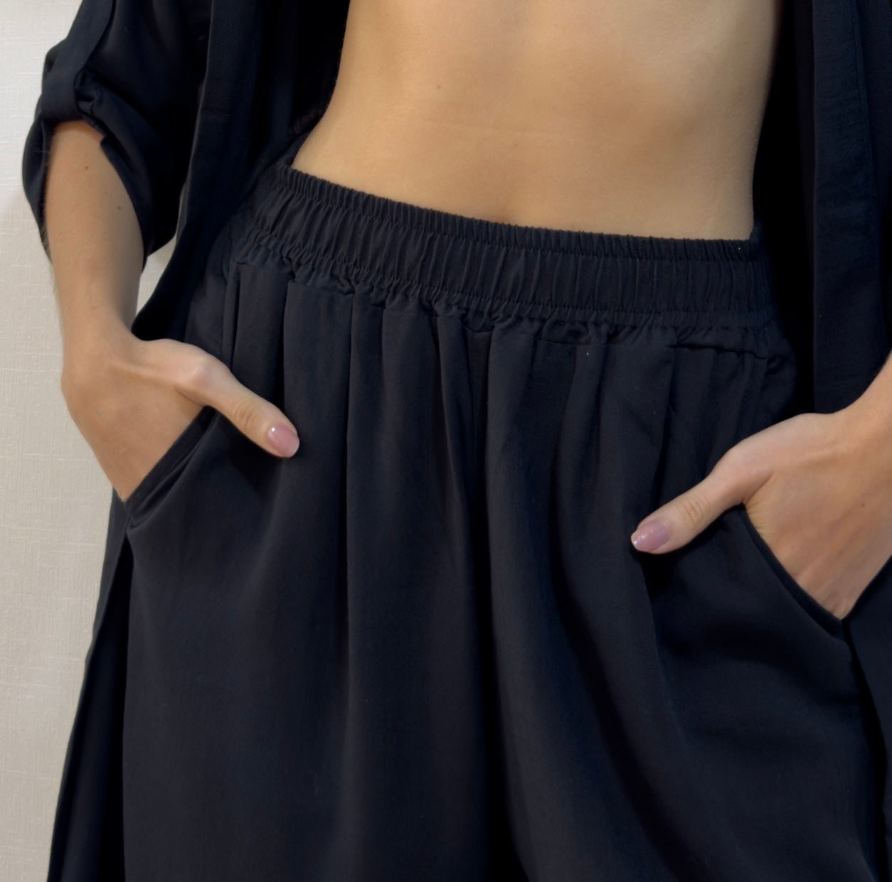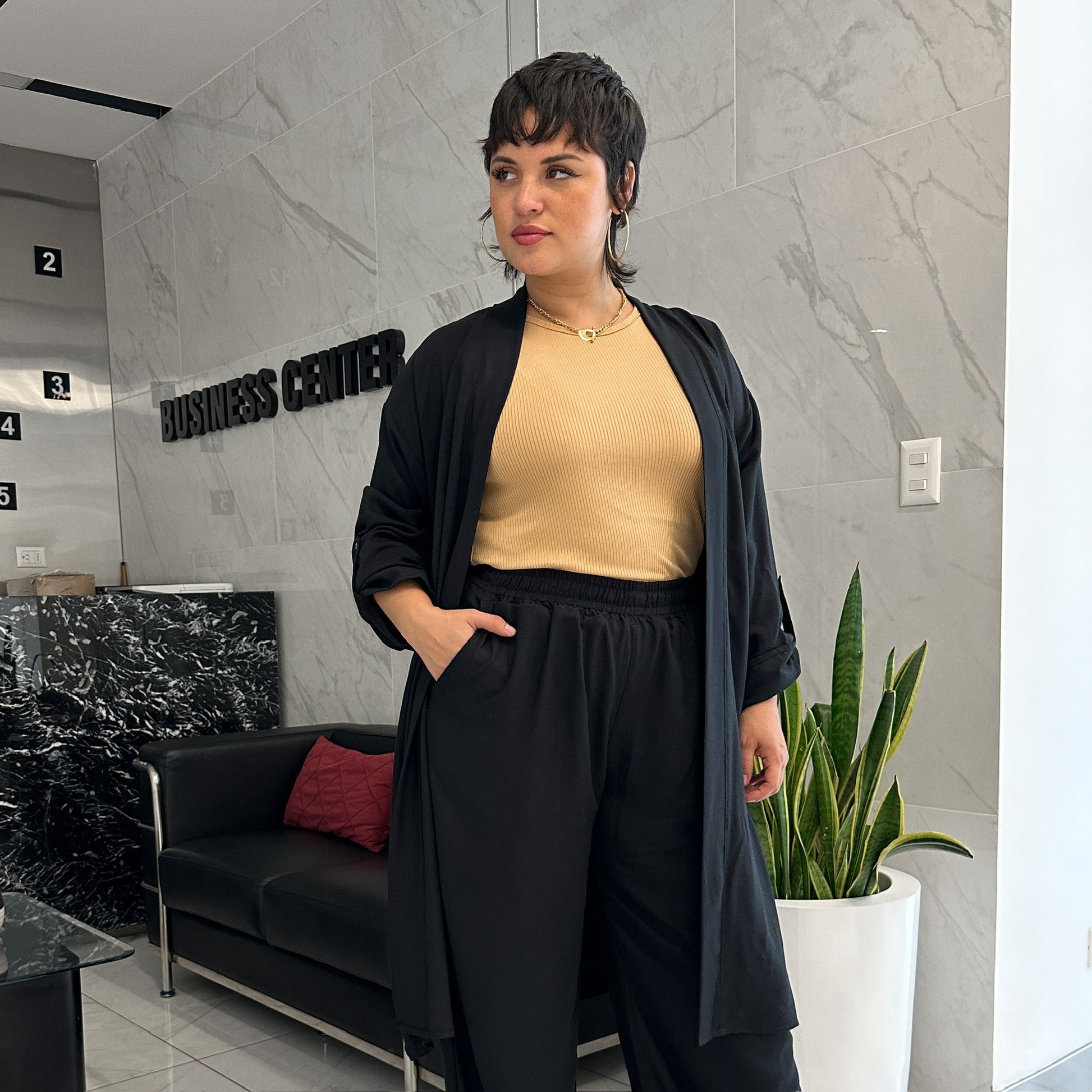 Nuestro kimono en tela lino shantall, suave al tacto en 100% rayón, es un modelo manga larga con cinta ajustable y botón, es cómodo al ser holgado.