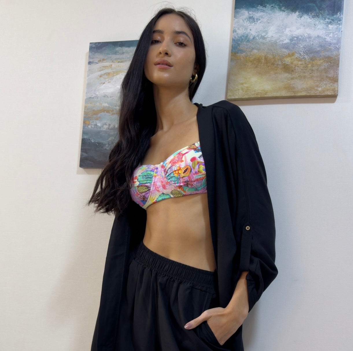 Mezcla de Poliamida y elastano. Lleva forro importado interno. Copas prehormadas brasileñas.